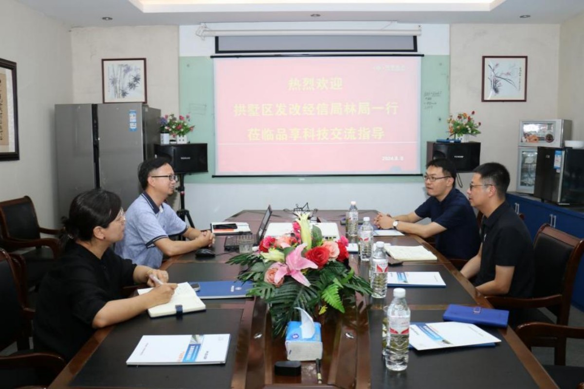8月8日,杭州市拱墅區(qū)發(fā)改經信局黨組副書記、副局長林廣瑤,工信科科長魯劍等領導一行蒞臨品享科技走訪調研,長慶街道經濟科項坤科長陪同考察,品享科技董事長蘇紅波及企管部部長陳林英等共同接待。