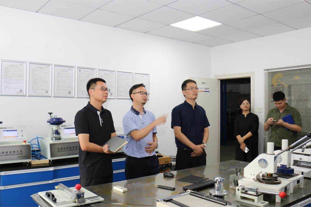 在此次走訪調研期間,蘇紅波董事長向來訪各位領導匯報了公司發(fā)展歷程、產品領域開拓、企業(yè)近期經營狀況、科技創(chuàng)新研究成果等情況以及未來的發(fā)展目標,展示了品享科技在紙制品檢測儀器智能化系統(tǒng)平臺領域取得的科技成果和市場數(shù)字化應用。
