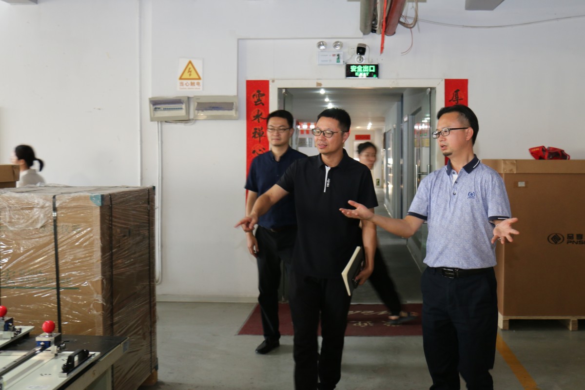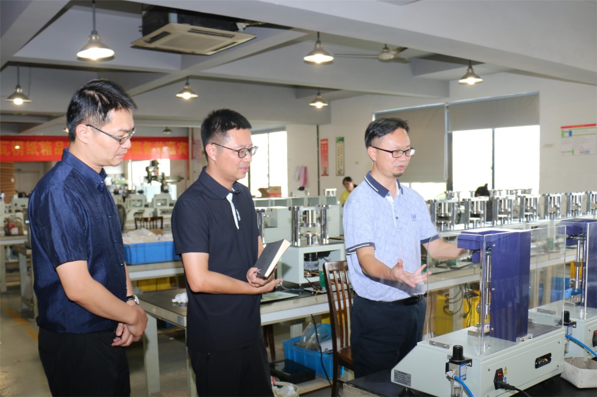 在品享科技儀器生產制造車間,實地考察設備生產調試生產情況,了解公司當前存在的困難,并提出意見建議。